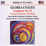 Our live performance (from November 2005) of Cantata da Requiem by Gloria Coates is included on this recent Naxos release of Coates's work, on the America Classics series. It has been widely praised by critics in Europe and North America. Also includes: Symphony No. 15, Homage to Mozart (Vienna Radio Symphony Orchestra, Michael Boder conducting) and Transitions (Ars Nova Ensemble Nuremburg, Werner Heider conducting).
